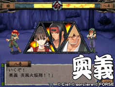 敵のリーダーを倒せば勝利,逆に主人公(八尋,朧)が倒されると敗北となります.(ゲームオーバーになる場合と,そのままゲームが進行する場合があります)